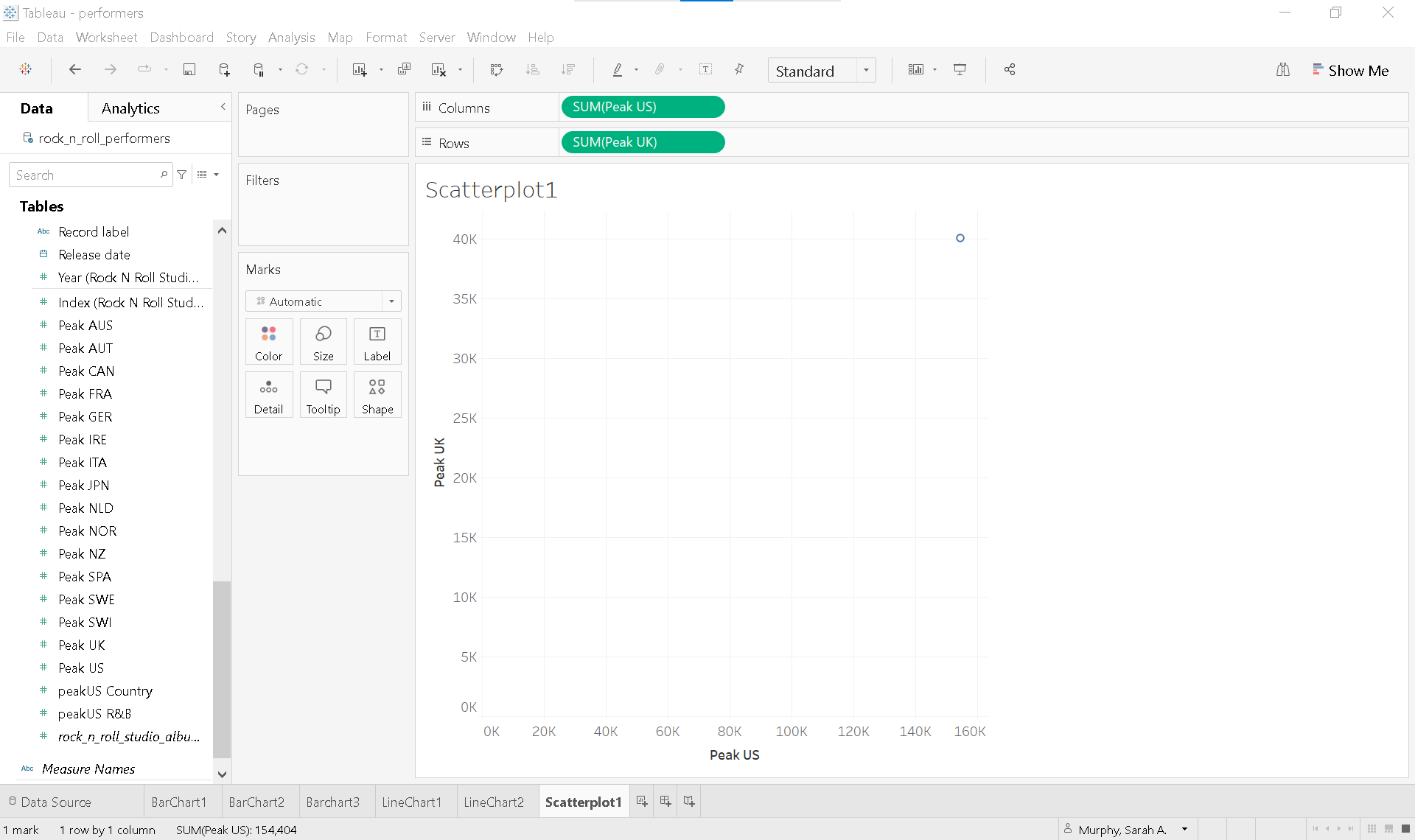 album_titleorrelease year) to visually group or differentiate data points.Change the mark type from Automatic to Circle for a cleaner, more focused design.